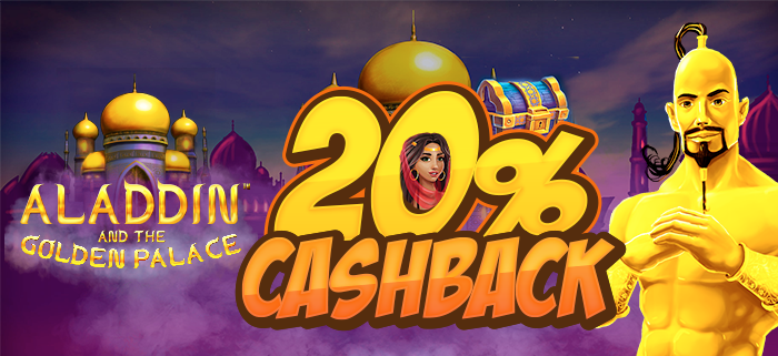 2. U toku promocije igrač ostvaruje pravo na cashback bonus u iznosu od 20% eventualnog neto gubitka koji ostvari na slot igri Aladdin and the Golden Palace.
